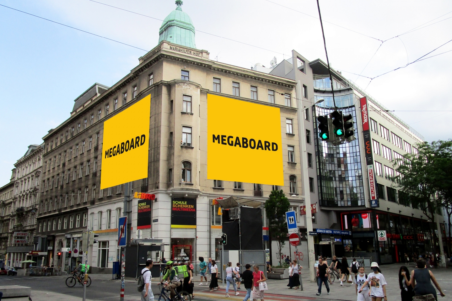 „Mit dem brandneuen Standort auf der Mariahilfer Straße“, so MEGABOARD Head of Sales Heinz von Büren, „ist es uns gelungen, einen Top Werbeplatz in einem hippen Bezirk anbieten zu können. Wir freuen uns schon auf die zukünftigen, impactstarken Werbebotschaften.“