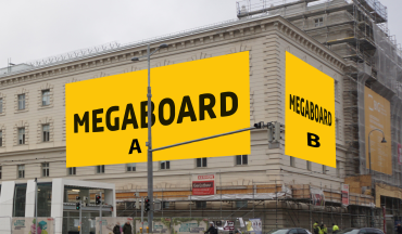MEGAgerüst: Das beleuchtete MEGAgerüst besteht aus zwei Werbeflächen und bietet dir die einmalige Chance, deine Marke im pulsierenden Wissens- und Verwaltungszentrum Wiens zu positionieren.