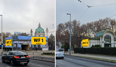 MEGAgerüst: direkt am Schwarzenbergplatz fällt die Werbefläche aus allen Richtungen auf. Im Ampelbereich bleibt jeder stehen und hat ausreichend Zeit, Ihre Werbebotschaft wahrzunehmen.